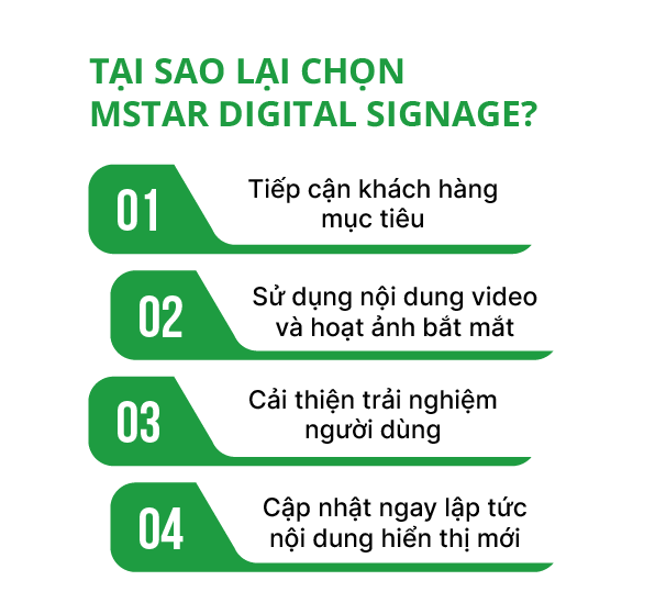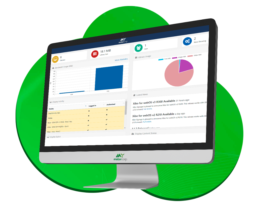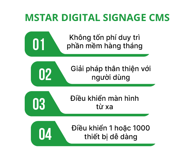 Nếu bạn đang tìm kiếm một công cụ để cải thiện tương tác giữa các thiết bị kĩ thuật số của mình và khách hàng, chúng tôi đã có giải pháp hoàn hảo để giải quyết nhu cầu của bạn đó là phần mềm quản trị hệ thống Xibo, chúng tôi cung cấp cho bạn khả năng tuỳ biến và phát triển không giới hạn nền tảng. Mstar Digital Signage cũng cung cấp cho bạn một nền tảng quản trị toàn bộ Digital Signage một cách hoàn toàn trực tuyến và tự động hoá.